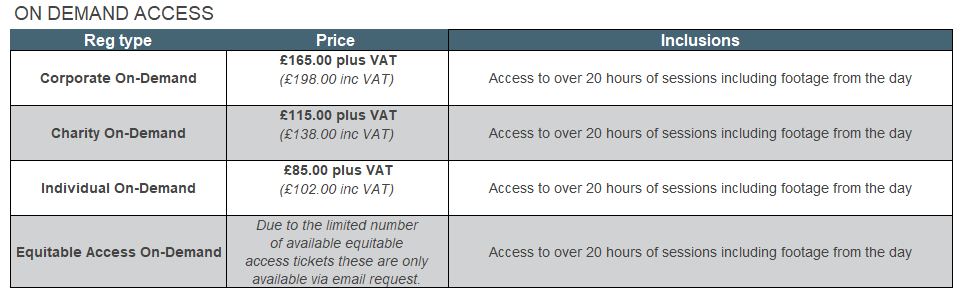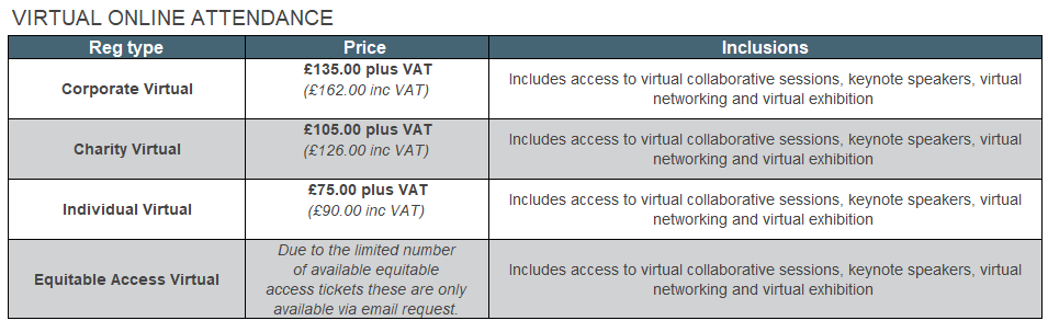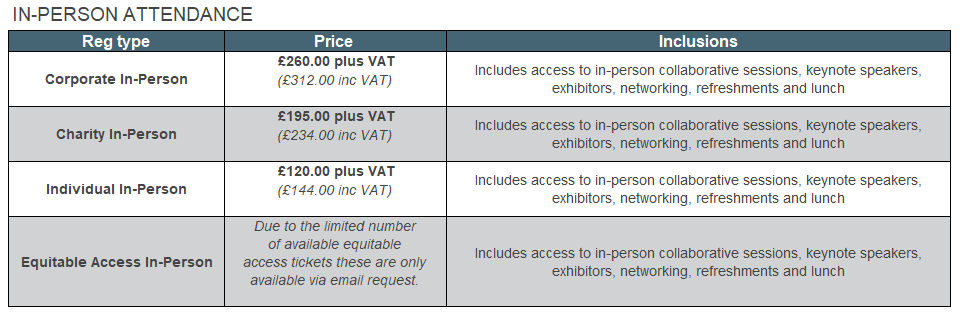 We are a charity, operating through a mainly volunteer team, due to administrative constraints and to ensure a seamless registration process, we are only able to accept payment for conference tickets by credit or debit card.
